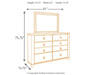 Details Includes dresser and mirror, Made of engineered wood (MDF/particleboard) and decorative laminate, Whitewash replicated worn through paint with authentic touch, Replicated wood grained block pattern with authentic touch, Antiqued brass-tone knocker hardware, 6 smooth-gliding drawers, Mirror attaches to back of dresser, Safety is a top priority, clothing storage units are designed to meet the most current standard for stability, ASTM F 2057 (ASTM International), Drawers extend out to accommodate maximum access to drawer interior while maintaining safety, Assembly required