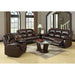 Relax and enjoy the soft comfort of this living room group, which includes built-in recliners in the sofa and love seat. Create a sectional by adding a corner chair. Upholstered in a rustic brown bonded leather.